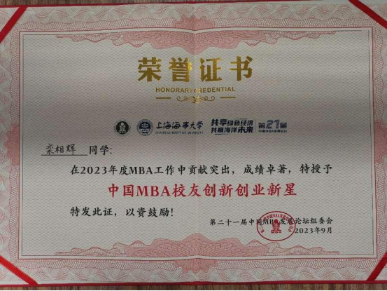 公司专硕联合会喜获“2022年度中国MBA十大优秀联合会”荣誉称号,MBA2018级员工栾相辉获评“中国MBA员工创新创业新星”称号;MBA2021级、地大MBA帆船协会会长周佩佳获评“2022年度中国MBA新秀100”称号;MBA2023级班长陈强获评“2023年度中国MBA新秀100”称号。