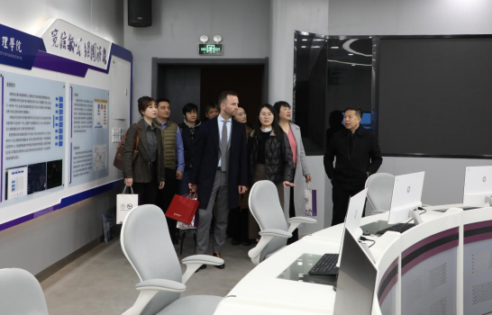 会后,党委书记杨昌锐带领法方代表参观了公司新文科实验室并合影留念。