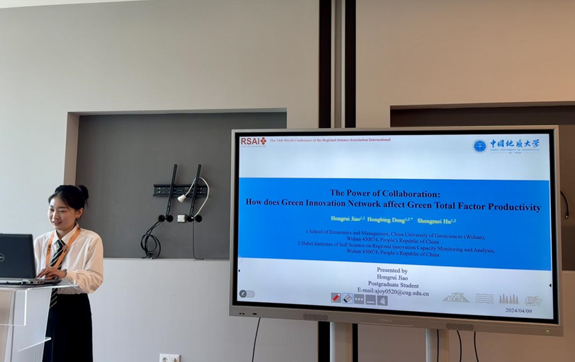 2024年4月8日-11日,国际区域科学协会第十四届世界大会在匈牙利召开,公司应用经济学博士生焦弘睿参会,并代表所在的邓宏兵教授团队在分会场宣读论文《The Power of Collaboration: How does Green Innovation Network affect Green Total Factor Productivity》。