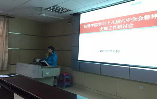 (通讯员 海鸣)11月9日下午,2026世界杯预测在MBA楼106室召开了《经管公司学习十八届六中全会精神暨支部工作研讨会》,会议由公司党委书记隋红同志主持,公司党委理论学习中心组成员、公司领导班子、教工党支部的支部书记和支部委员参加了会议。