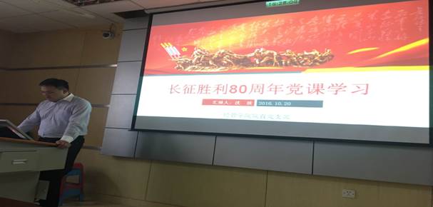 全体教职工党支部和员工党支部结合“两学一做”学习教育工作安排,认真组织召开支部大会,举办“主题党日”活动。各党支部党员齐唱国歌、重温入党誓词,集体诵读党章。同时,开展《壮举、奇迹、史诗——纪念中国工农红军长征胜利80周年》的主题讲座,认真学习《光明日报》特稿《铸就民族热血丰碑的英雄史诗》。