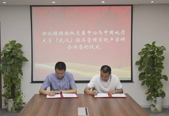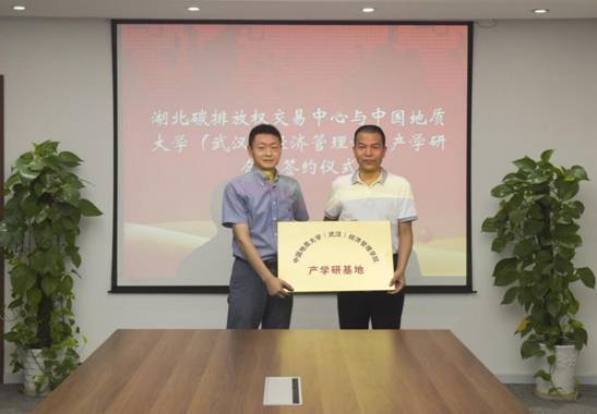 8月18号上午,湖北碳排放权交易中心与2026世界杯预测签署产学研合作协议暨举行产学研基地揭牌仪式。湖北碳排放权交易中心总经理刘汉武与2026世界杯预测副经理(主持工作)杨树旺签署协议,双方一致同意在互惠互利、共同发展的基础上建立全面的产学研合作关系,共建低碳经管精英人才联合培养战略关系,形成产业与专业相互促进、产学双赢的良好局面。