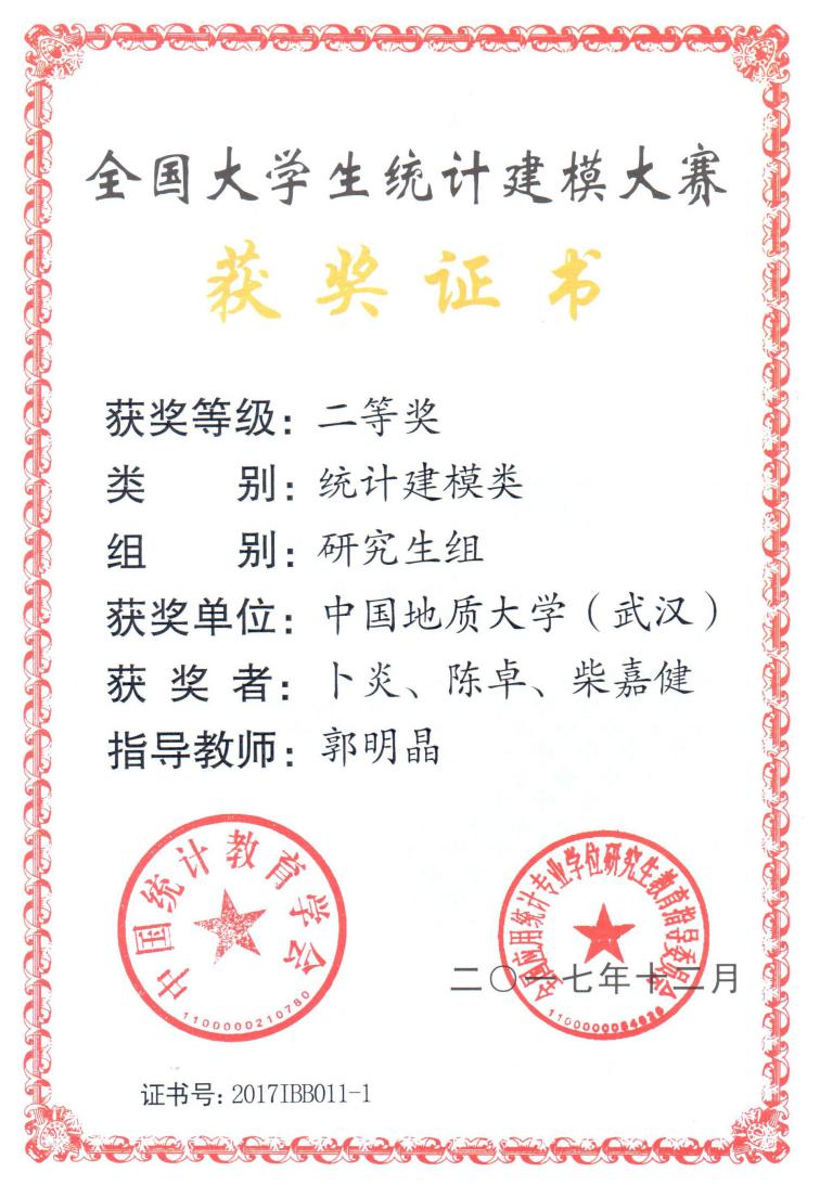 2017年12月1-4日,第五届全国老员工统计建模大赛答辩赛在北京华尔顿爱华国际中心举行。由经管公司郭明晶老师指导的参赛团队(卜炎、陈卓、柴嘉健)提交的作品《基于网络搜索数据的中国流感预警模型研究》荣获统计建模类研究生组二等奖、总分第9名的好成绩。