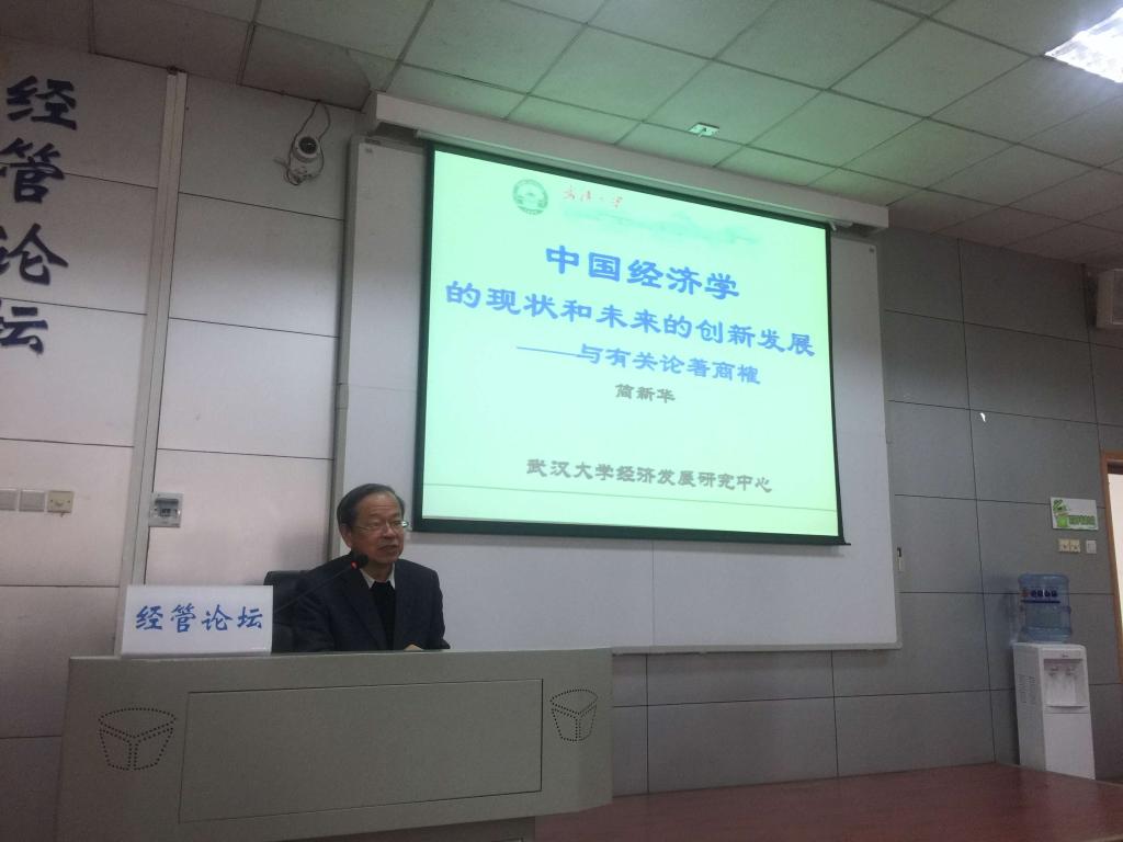 2017年12月8日下午14:30在MBA楼成功举办了第176期经管论坛,本次论坛我们诚挚邀请了武汉大学经济与管理公司的简新华教授,本次论坛主题为“中国经济学的现状和未来的创新发展——与有关论著商榷”。经管公司副经理王开明教授和公司的老师同学一起参加了本次经管论坛。