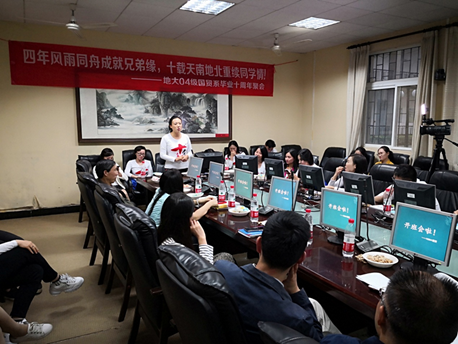 同学们参观新行政楼和逸夫博物馆,感受校园点滴变化,在北区食堂重温昔日校园生活。13日下午3:30—5:30,师生们在北四楼104会议室召开了具有特殊意义的班会活动。同学们饱含对母校的深情,回顾了大学四年专心求学的艰苦历程,重温了老师们的谆谆教导和同学间相互帮助的深情厚谊;分享了毕业十年来的工作经历与感悟。肖建忠副经理代表公司欢迎同学们返校交流,介绍了经管公司与国贸系近十年来的蓬勃发展情况,寄语同学们不忘初心,砥砺前行,展我地大学子艰苦朴素、求真务实之风;倪琳、吴磊与易杏花等老师也深情回忆了遥远而熟悉的青葱岁月,为同学们的成就感到由衷高兴与自豪,祝愿大家路越走越宽广,欢迎大家常回母校看看。