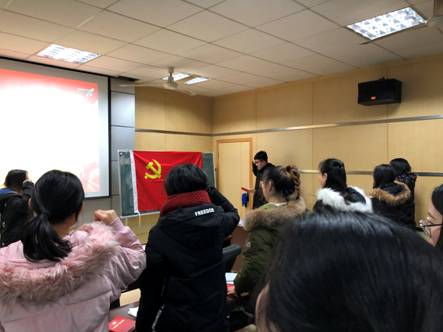 2018年12月29日下午14:00,2018级管理班硕士研究生党支部于公司北区MBA楼106教室开展了主题为“学习习近平总书记在庆祝改革开放40周年大会上的重要讲话精神、《中国共产党支部工作条例(试行)》及学习“弘扬爱国奋斗精神””的主题党日活动。本次活动由支部组织委员伍青青同志和宣传委员程仕菊同志主持,支部应到党员33人,实到26人,事假7人,有5名积极分子参与学习。