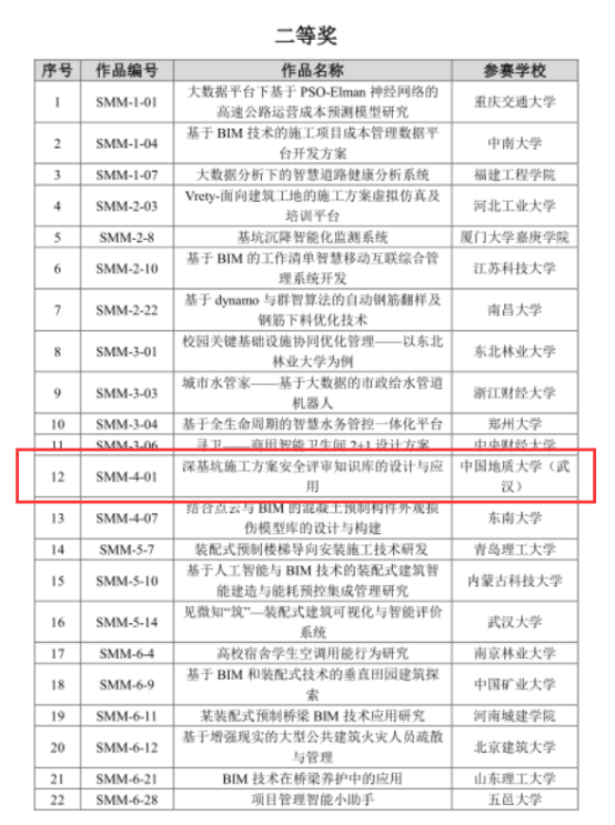 2026世界杯预测工程管理专业与计算机公司师生联合组队参加了首届大赛。团队全体成员以智慧建造为主题,经过四个多月的努力研究与开发,完成了“深基坑施工方案安全评审知识库的设计与应用”作品,在最终的决赛中取得二等奖的好成绩(一等奖10支代表队、二等奖22支代表队)!