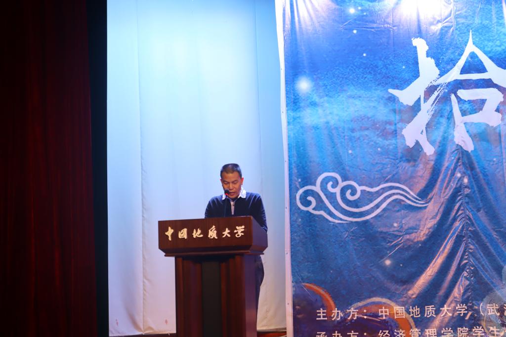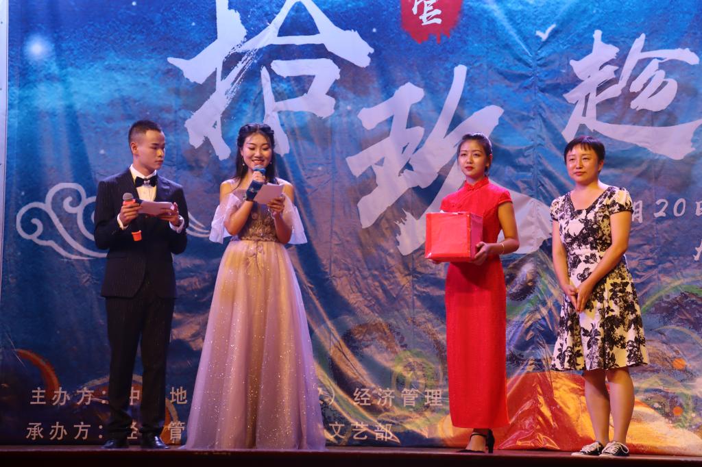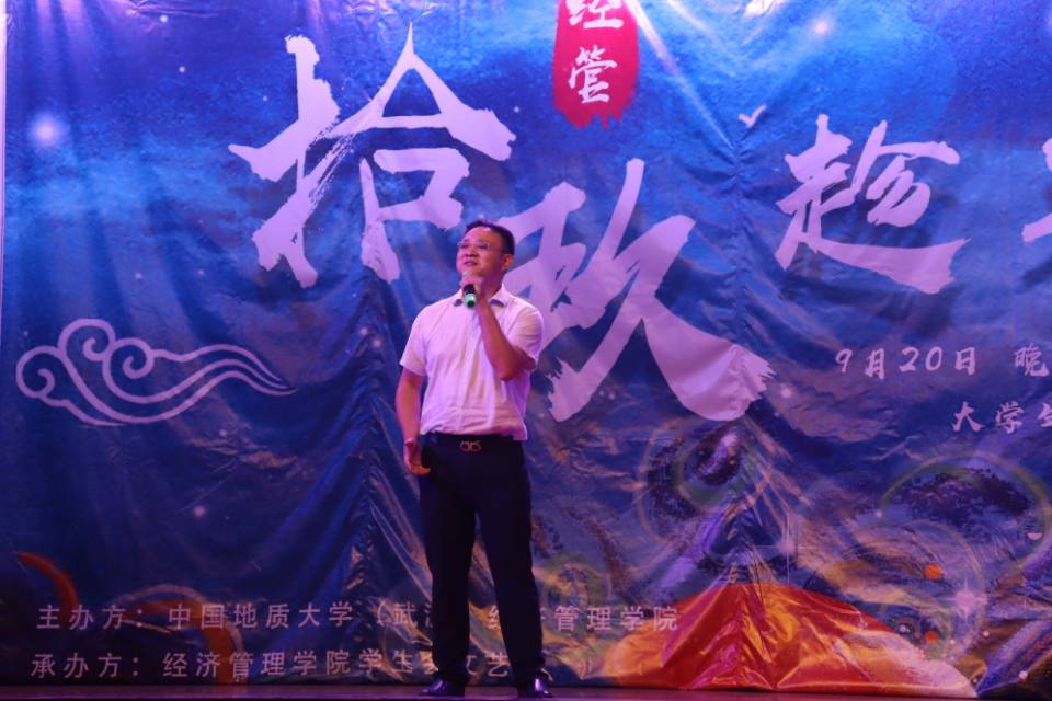 回校招聘的员工,2005级经济学专业本科生,招商银行黄石分行行长助理刘杨为同学们分享经历,鼓励大家努力向前。沈波老师在师生的强烈邀请下即兴献唱,一首《秋意浓》再次点燃全场。晚会的最后,公司主持人队以清朗醇厚的嗓音吟诵《追梦地大》,全场起立齐唱《歌唱祖国》,为晚会添上完美收官之笔。