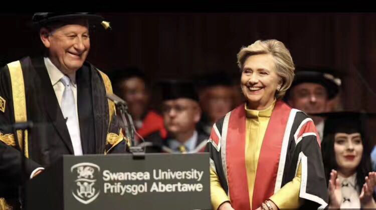 2016年7月5日英国查尔斯王子出席斯旺西大学海湾校区的开幕典礼;2017年3月21日,英国首相特蕾莎·梅到访斯旺西大学,为大学和西南威尔士地区引入13亿英镑的投资;2017年10月14日希拉里·克林顿访问斯旺西大学并获得法公司荣誉博士学位。