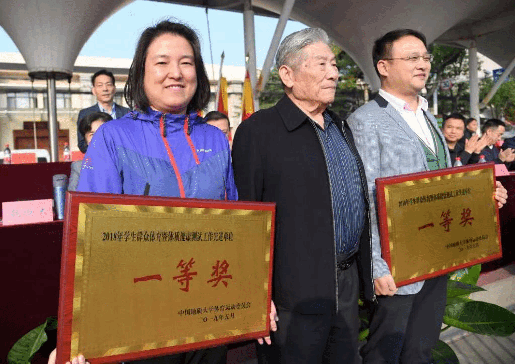 2019年11月8日,在一年一度的校田径运动会开幕式上,校体育运动委员会公布2018年度员工群众体育暨体质健康测试工作先进单位名单,公司再度蝉联一等奖,赵鹏大院士亲手为公司颁发奖牌。