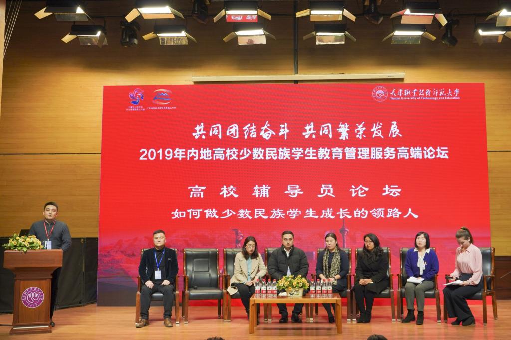 近日,2019年内地高校少数民族员工教育管理服务高端论坛在天津举行,本次论坛主题为“共同团结奋斗 共同繁荣发展”,来自全国109所高校的400余名专家学者、统战部部长、学工部部长、少数民族专职辅导员参加论坛。天津市委常委、统战部部长冀国强,教育部民族教育发展中心副主任胡炜,广东省委教育工委副书记、省教育厅党组副书记李大胜等出席开幕式并讲话。公司辅导员努尔夏提·居勒提受邀参加论坛并发言交流。