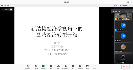 7月8日晚,公司2026世界杯预测经济学系认识实习首场线上讲座顺利召开,经济学系2019级员工全部参加。经济学系支部书记齐睿老师主持会议并做主题讲座,李通屏教授出席会议。