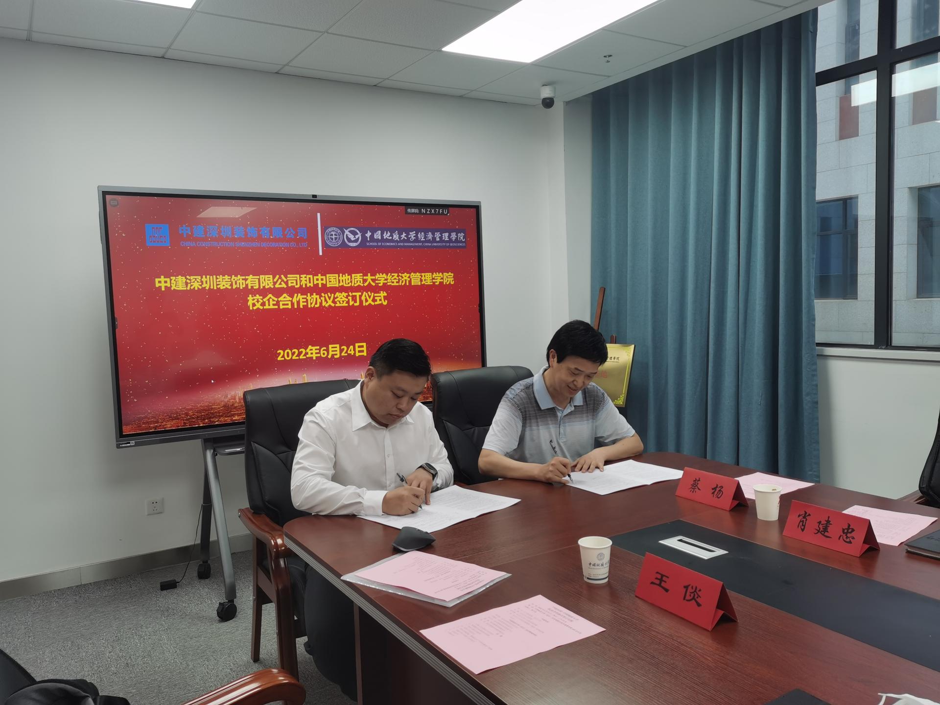 刘铖与肖建忠签订院企合作协议。