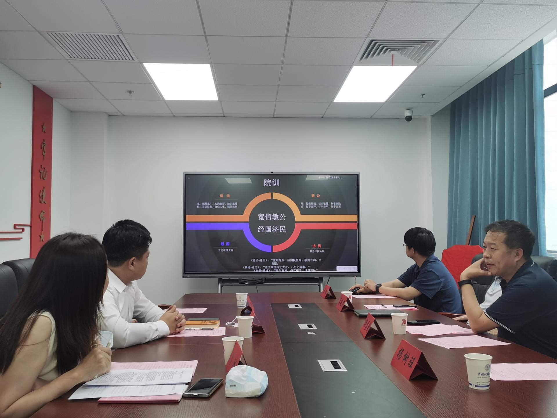 (通讯员 张雨 张弛)2022年6月24日上午10点,中建深圳装饰公司副经理李冰、武汉分公司经理刘铖、武汉分公司人力资源部经理贾宝鹏以及武汉分公司项目管理部经理助理王倓(公司员工)等人来院洽谈合作。公司党委书记杨昌锐、经理杨树旺、副经理肖建忠、管理科学与工程系党支部书记孙涵、辅导员蔡杨、兼职辅导员张雨参会。