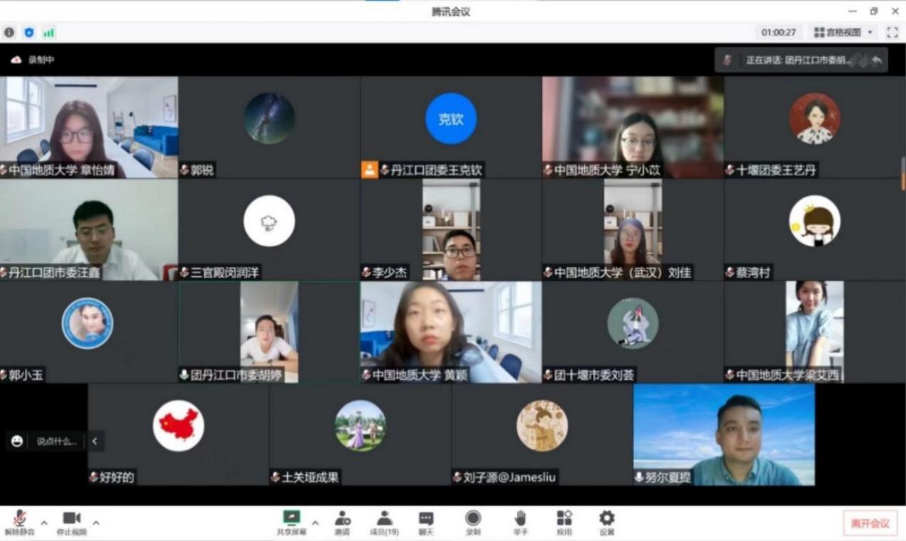 随后,公司经管公司团委副书记努尔夏提·居勒提简要介绍了公司“青力缔造”青年实践队的领队、指导老师及本硕博成员组成情况,以及团队前期工作基础。他介绍,近年来公司高度重视与十堰当地工作交流,自2018年以来在竹山县开展关于“绿松石+电商+非遗文化”等项目实践,公司师生及当地骨干员工多次发动群众共谋、共建、共管、共创、共享,多次获评“三下乡”社会实践、挑战杯、互联网+等系列活动及赛事省级奖项和荣誉。本次“青力缔造”实践队将不辱使命,继续充分发挥专业、人才、科研优势,以本硕博多学科交叉融合的团队优势,积极融入党政工作经验和地大工作实践理念,结合当地需求,为十堰丹江口贡献地大智慧和力量,争取带动群众解决实际困难,带来一定实质效益。