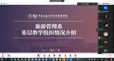 (通讯员:黄珂 李会琴)2022年12月8日下午2点,旅游管理系召开基层教学组织建设研讨会。会议采取线上方式,由肖拥军主任主持,旅游管理系全体教师参加,还特别邀请了公司博物馆馆长徐世球教授。