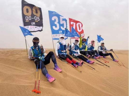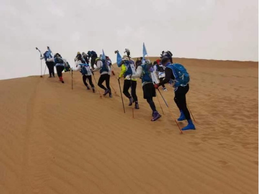 首次参加亚沙赛的B队队员2021级MBA员工孙浩川完赛后感叹:“来后悔三天,不来遗憾一辈子;风起黄沙更有生命,一沙一世界,沙如人生。”