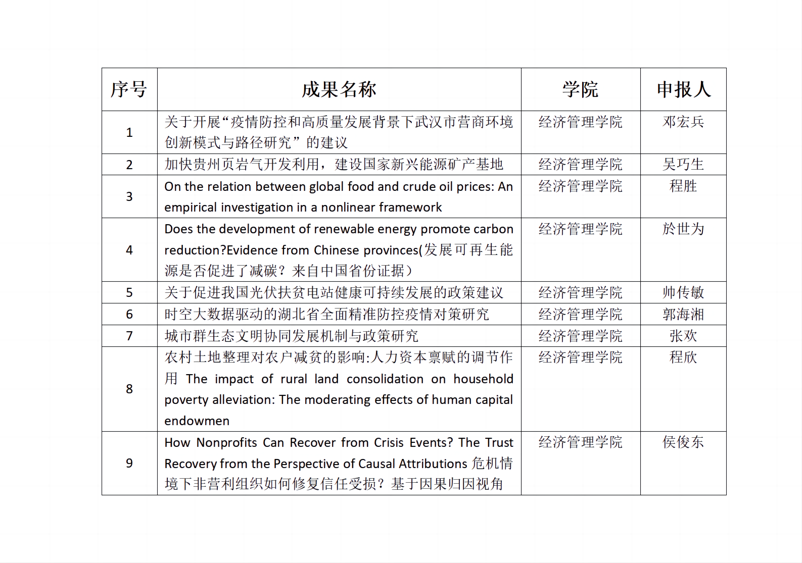 2019-2021年度湖北省高等公司人文社会科学研究优秀成果入选名单