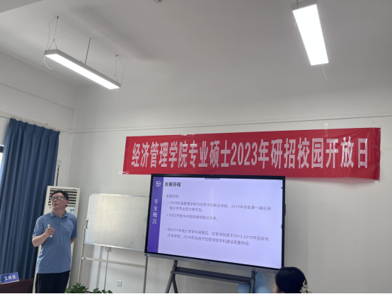 统计系李奇明老师详细介绍了应用统计发展历程,向同学们介绍了公司应用统计专业学制与学位、专业培养方向与培养目标、团队力量。他指出公司虽然应用统计专业2019年开始招生,但公司统计学科发展历史悠久,已有多年办学历史。