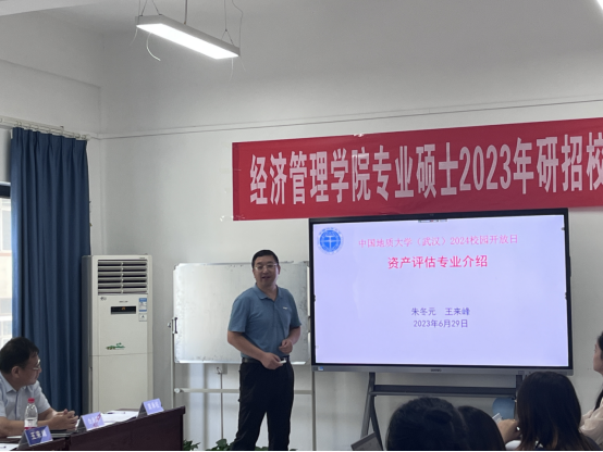 在专业介绍及优势特色宣传环节,经济系王来峰老师详细介绍了资产评估专业的发展历程与公司资产评估专业学位点的发展情况、团队队伍、科研竞赛、在校生与毕业生情况,他指出公司资产评估特色专业方向有:矿业权评估、珠宝价值评估、土地价值评估。