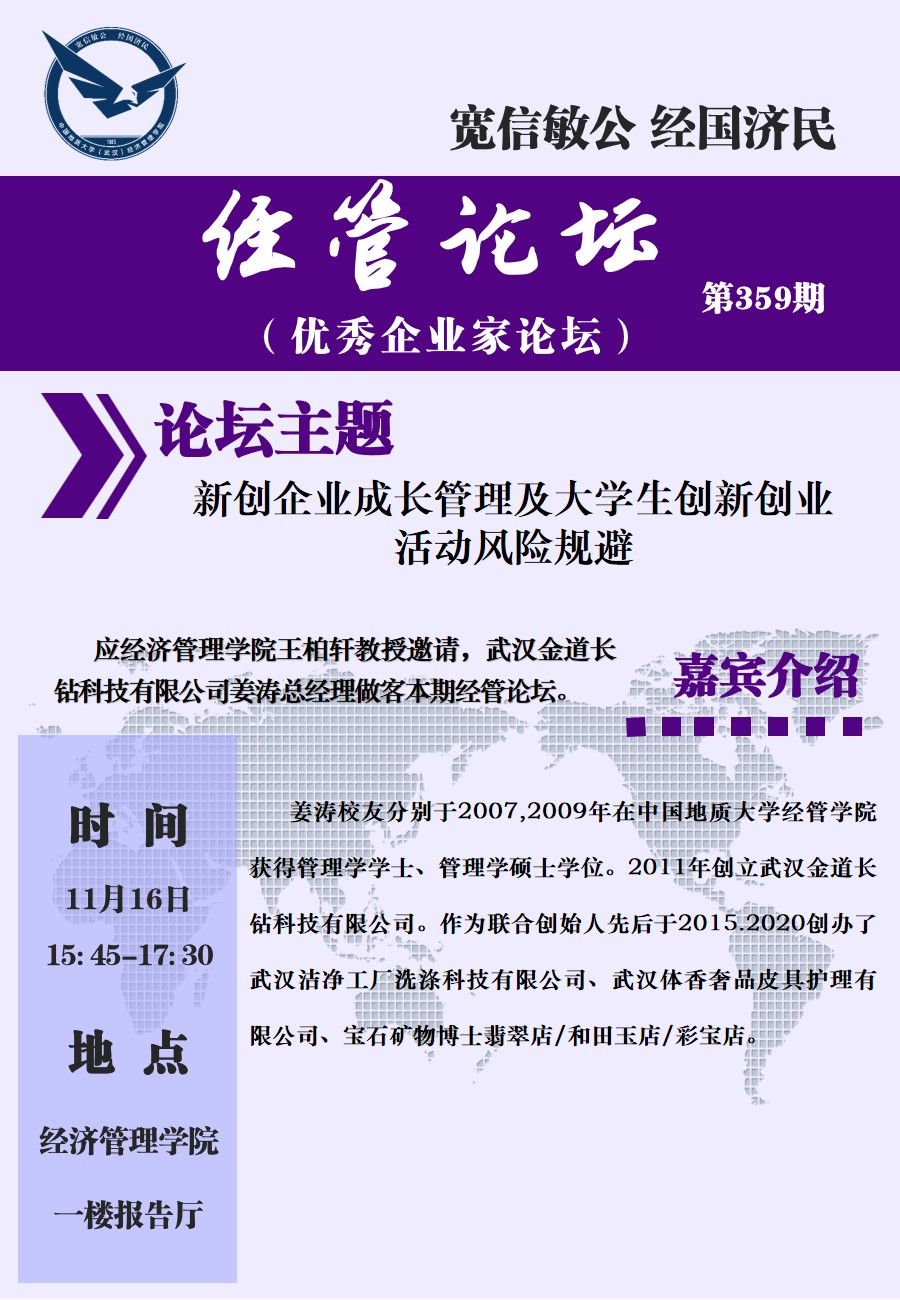 经管论坛(第359期)新创业成长管理及老员工创新创业活动风险规避