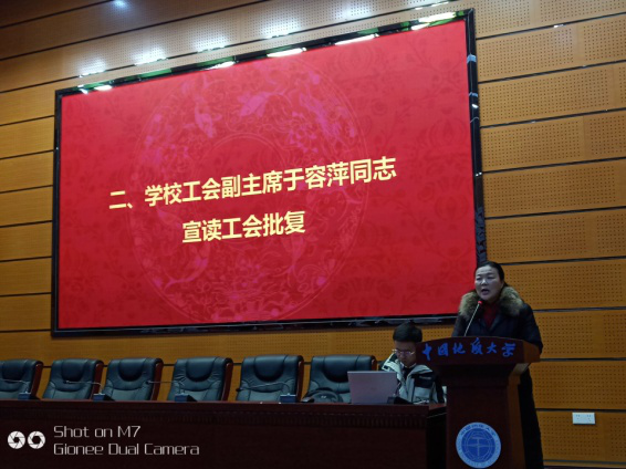 校工会副主席于荣萍同志出席会议并致辞