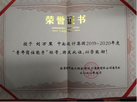 在校期间担任校研究生会办公室主任,获校级社会工作先进个人称号。2016年毕业进入湖北省工程咨询公司工作,现任规划研究部副书记,副主任,经济师,先后荣获2017年度公司标兵称号;2018年度公司标兵称号,同年考核优秀进入公司股东名单;2019年7月获公司技能大赛三等奖,8月收到咸宁市农业农村局好评函,10月获丹江口市发展改革局感谢信;12月被世界杯冠军预测入口(武汉)聘为校外硕士导师;2019年度公司标兵称号;2019年度公司技能大赛三等奖;2020年5月获集团五四“青年岗位能手”称号。