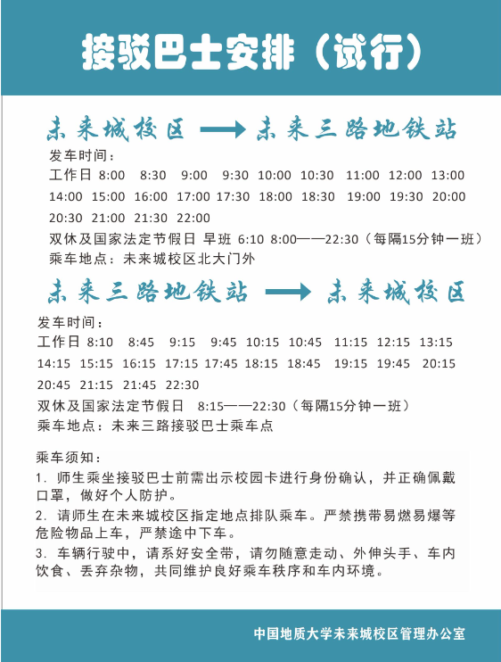 集团接驳巴士:地铁未来三路站——未来城校区