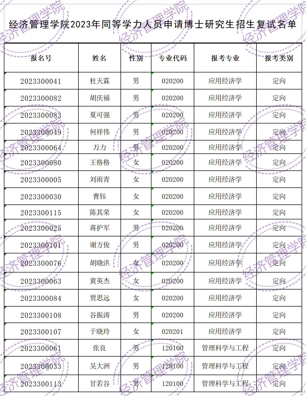 根据2023年同等学力人员申请博士学位研究生招生复试录取工作方案要求,经公司、公司审核,现公布通过资格审核考生名单。