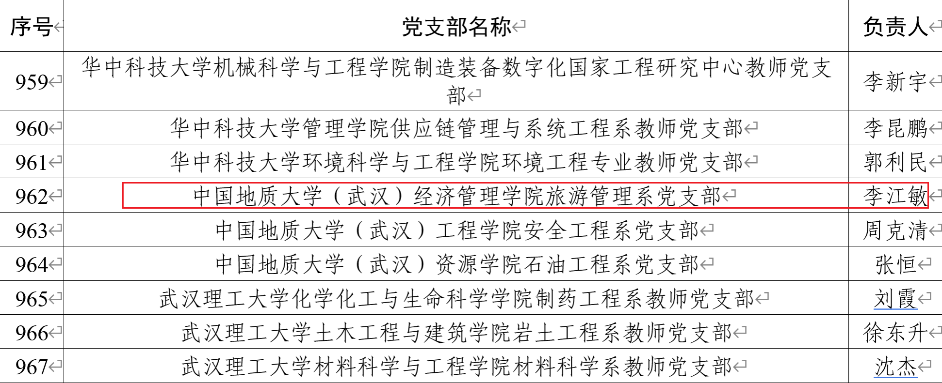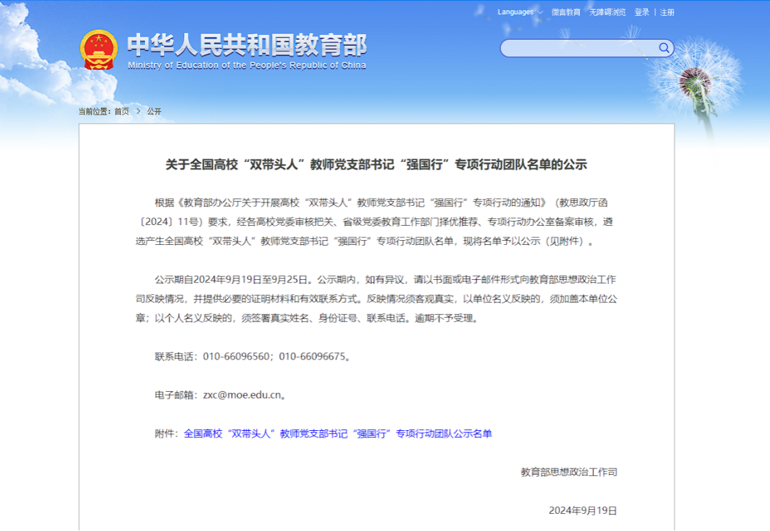 日前,教育部办公厅公布《关于全国高校“双带头人”教师党支部书记“强国行”专项行动团队名单的公示》,公司旅游管理系党支部书记李江敏作为团队负责人入选。