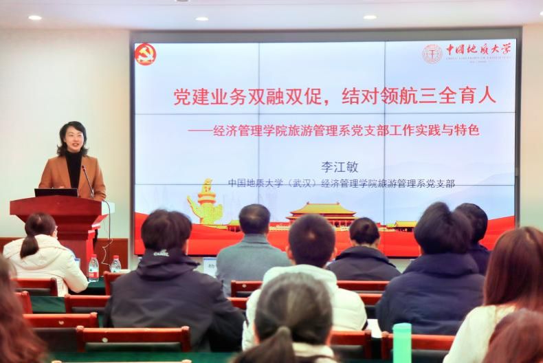 杨昌锐书记围绕《高公司党建“双创”工作思考和探索》,介绍了公司党建双创工作经验,并从党组织领导和运行机制力争科学、规范、高效,政治把关力争严格、细致、全面,思想政治工作力争面对面、心贴心、实打实,基层组织制度执行力争规范、严格、精细以及推动事业发展有位、有为、有力等五方面分享经济管理公司党委“五融”工作法以及党建工作机制体制创新经验。李江敏书记基于《党建与业务双融双促,结对领航三全育人》,分享了旅游管理系党支部工作实践与特色,把祖国大好河山融入党课,以场景思政培育员工专业素养,用红色教育资源筑牢青年理想信念,实现“党建+教学科研+结对领航”,联动师生党团聚合力。专题报告获得了与会人员的一致好评,表示对公司和支部党建“双创”有了更深的认识和收获。