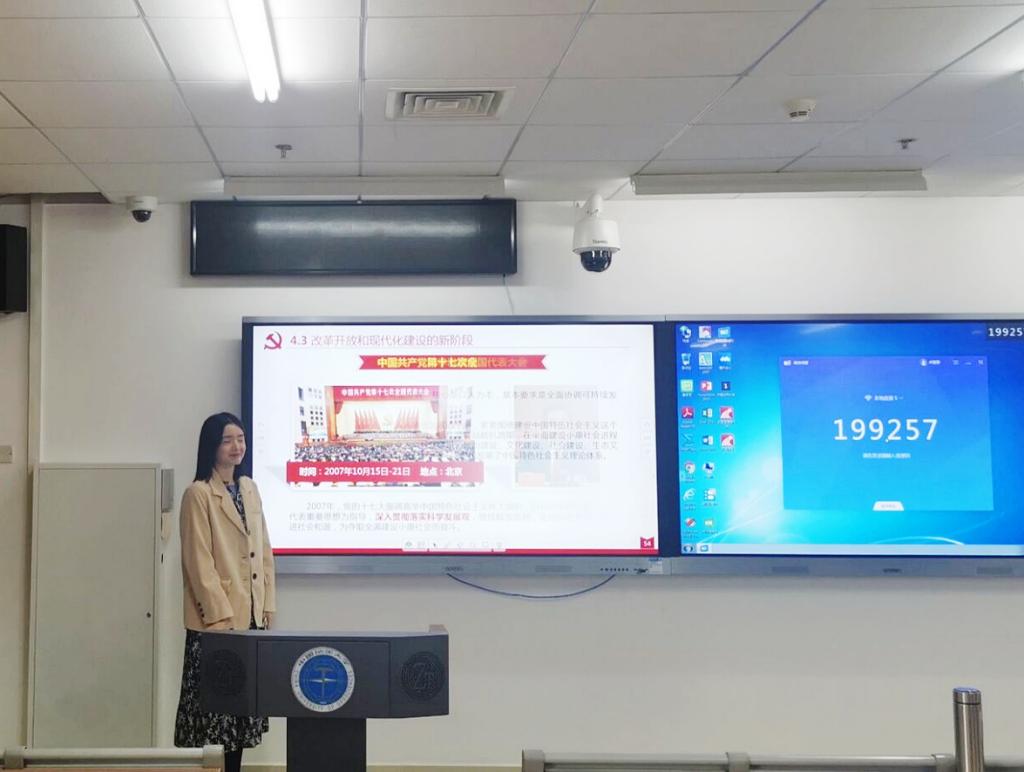 10月24日上午九点,培训班学员在公教一303教室开展“四史”学习交流研讨会。各学习小组从党史、新中国史、改革开放史和社会主义发展史四个方面分享学习成果和感悟。第一组成员围绕中国共产党党史,以党的发展历程为主线,重点学习汇报党史中的重大事件、重要会议、重要文件、重要人物,并结合当前实际,结合我国疫情防控工作充分展现中国共产党的伟大领导。第二组成员在介绍新中国的发展历程的同时秉承以史为鉴的精神,在报告中特别提到了新中国发展历程中的历史教训和经验总结,并指出其在脱贫攻坚、决胜小康之际的重要意义。第三组以改革开放史为切入点,悟深悟透,从多维度展示了改革开放以来中国取得的举世瞩目的成就。第四组成员则着重结合当前疫情实际,对中国特色社会主义制度在疫情防控中发挥的优越性以及其强大的生命力进行学习汇报。