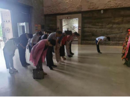 上午10:30抵达中原纪念馆,支部党员代表向革命先烈敬献花篮,全体党员鞠躬致敬,并重温入党誓言。