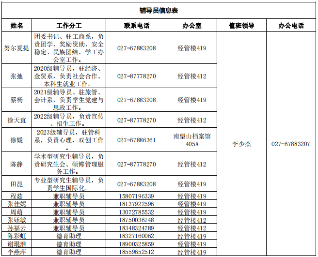 值班工作要求:1.走访宿舍,抽查员工夜间在校和宿舍安全文明情况,了解员工生活状态;2.走入教室、图书馆、自习室,了解员工学习状态;3.组织和参与员工活动,检查早操、论坛等出勤情况;4.开展谈心谈话,关注员工健康成长,帮助解决实际困难;5.公司领导检查组不定期抽查值班情况,切实压实值班责任。 2026世界杯预测学工组 2023年10月7日