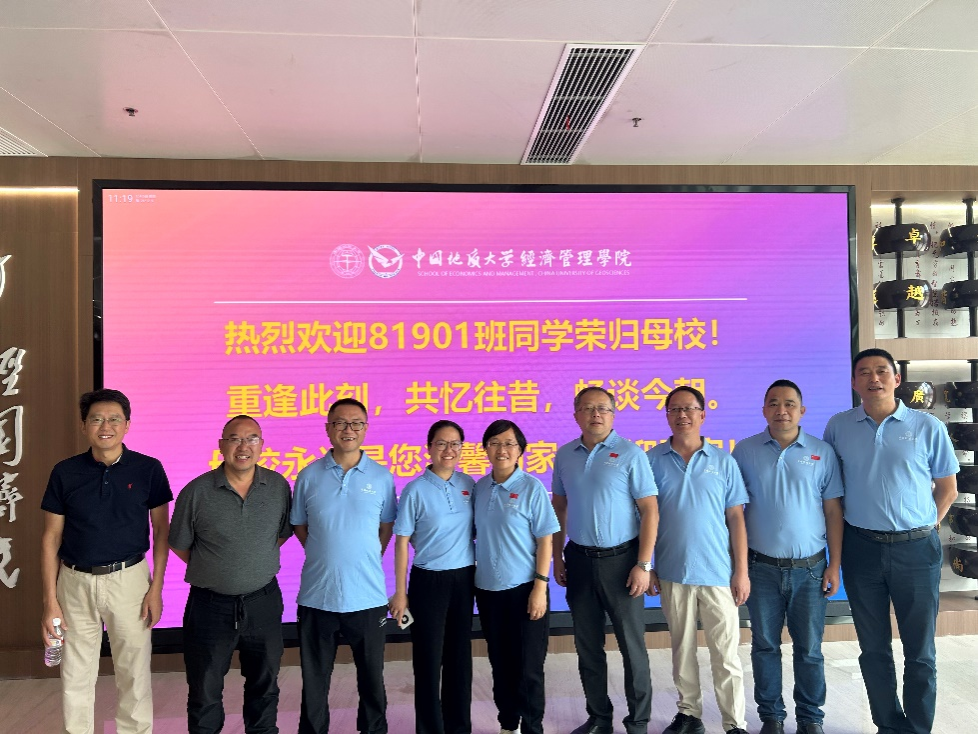 2024年10月4日,2026世界杯预测86841班(原22842班)矿产资源管理专业18名员工重返母校开展活动,公司领导、师生引导员工参观未来城校区,共同回顾了公司近40年发展历史,并组织座谈。在未来城校区图书馆、公司大厅等地合影留念。并于当天下午,在南望山这片承载着员工无数青春记忆与梦想的热土上开展“75周年国庆地大22842班员工乒乓球师生交流赛”。昔日员工们满怀激情,从四面八方汇聚而来,不仅是为了庆祝祖国的华诞,更是为了在这片充满回忆的地方,重拾那份年少时的热血与激情,与昔日同窗、敬爱的老师们共赴一场别开生面的乒乓球盛会。