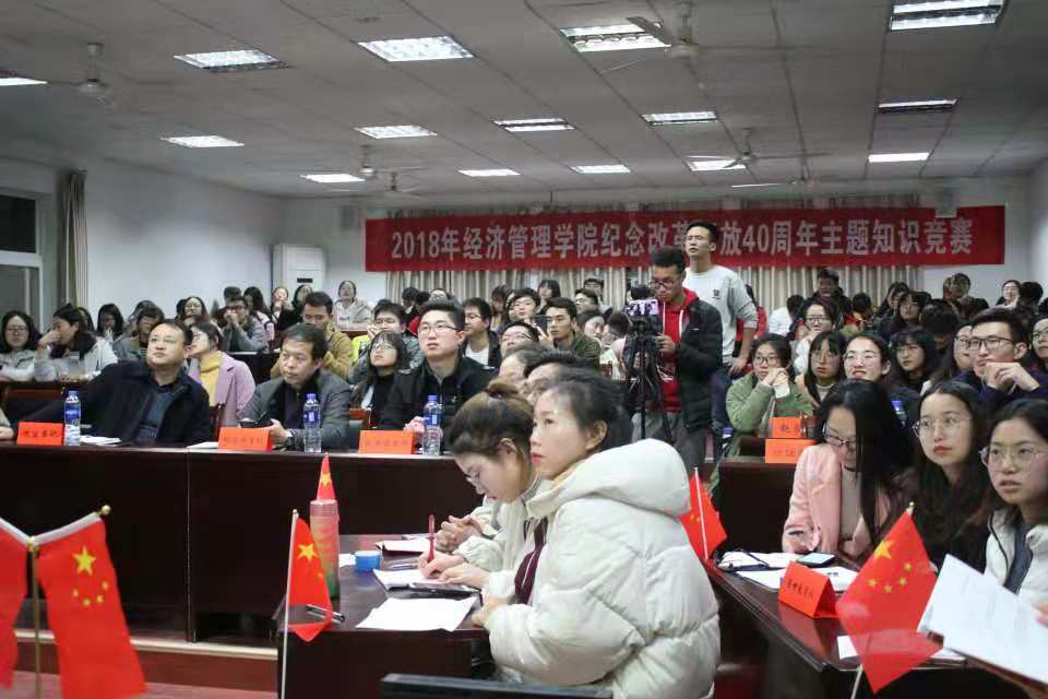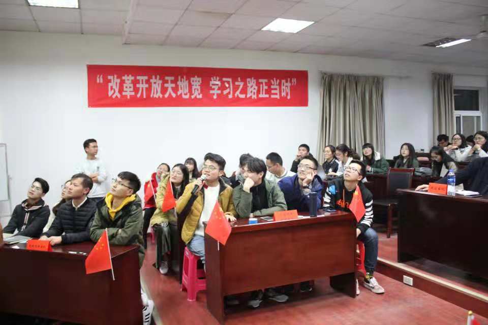 (公司党建办公室:王洁彬)2018年11月22日晚7:00,由经济管理公司党委主办、公司党建办公室承办的“改革开放天地宽,学习之路正当时”——纪念改革开放40周年主题知识竞赛活动在MBA楼208室如期举行。出席本次活动的嘉宾有:公司党委书记杨昌锐老师、公司党委组织部马洪福老师、公司党委副书记沈波老师、公司管理科学与工程系教职工党支部书记孙涵老师、学工组全体老师;全体员工党员到场观看学习。