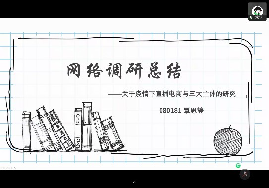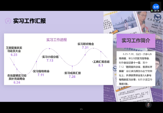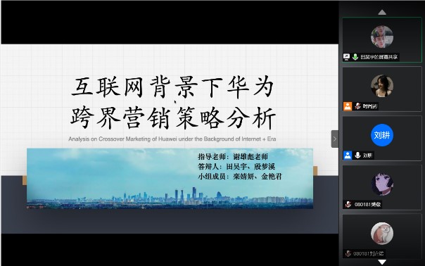 交流会的主要环节为各专业班级同学汇报实习感悟与收获。首先有外国语公司092181班田昊宇、殷梦溪同学分享“互联网背景下华为跨界营销策略分析”为主题开展的小组网络调研实践活动,紧接着是蔡琪、董方黎明小组对其疫情情况下十堰小河村绿松石电商直播营销策略的研究项目进行分享汇报。随后092171班肖丽民、张泽蔚小组对疫情之后消费者购买中药的行为影响因素调研结果进行汇报,该小组呈现出严谨的数据分析特色;来自同班级的王璐晴同学和大家分享了她在袁氏种业高科技有限公司国际贸易部实习过程中,对种子行业的基础了理解以及对中国市场进入海外市场的深度认识。继续为大家分享是来自080181班的覃思静同学,该小组的汇报主题为关于疫情之下直播电商与三大主体的研究,小组三位同学分工明确,合作顺利,收获了宝贵的调研经验;来自同班级的李明洋同学向老师和同学们介绍了他在联想(北京)有限公司人力资源部实习的经验体会,立足于与课本又跳出课本的实践经历弥足珍贵;080182班的王雪同学和冯玫婷同学分别汇报了以河北衡水市王集乡为中心及周边区域发展新型农业电商的可行性调研结果和有着温暖办公氛围的作业帮实习中对“996”的新认识。最后是市场营销专业的汇报,082181的李政嵘同学带来其小组关于盲盒市场现状的调研报告,从文献查找到市场调研层层分析,最后为盲盒行业提出四点建设性的意见;而后,082182的班长周雨婷同学总结市场营销专业的实习概况,计划清晰、有条不紊。