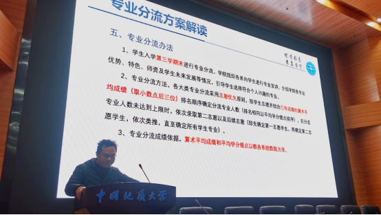 会议开始,教务科石磊老师对公司、公司的专业分流实施方案进行了解读。本科生按大类招生的政策体现了以员工的全面发展为最终目标,以培养宽口径、厚基础、高素质、强能力,具有创新精神的复合型高级经济和管理人才为具体目标的宗旨。按照“打通”培养和“分段”培养相结合的方式,员工进校后前1.5年,以通识教育课和大类基础课学习为主,公司针对“三个大类”和“一个专业”开设统一的大类基础课(学科平台课程),以为员工更好地学习专业课程和未来的发展奠定宽广而坚实的基础。公司工商管理大类按照分流要求,计划分为工商管理(双语班)、市场营销、会计学和旅游管理四个细分专业,大类专业分流采用公开、公平、公正的以志愿与专业规模适度平衡相结合、员工志愿与学习成绩相结合的原则,按员工志愿并结合已有成绩的算术平均成绩排名顺序确定分流专业人数,在分流专业人数未达到上限时,依次录取第二志愿以及后续志愿。