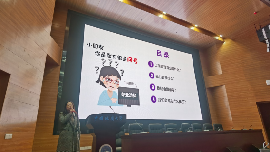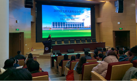 随后,工商大类各系代表教师进行专业分流宣讲。市场营销系郭锐老师就市场营销专业进行了正确解读,他指出营销不等于推销,营销是企业工作的核心;他还对营销系课程安排、团队队伍以及就业前景进行了简单的介绍。张京老师针对公司工商管理专业双语教学的办学特色着重进行了介绍,分享了往届工商管理双语班毕业生的就业和升学去向,并将往届优秀毕业生精心准备的介绍和祝福视频带到了宣讲会。会计系杨洁老师分析了会计学科的发展方向,指出财务人员在未来不仅不会被淘汰,反而需求巨大,此外她还对员工未来深造方向、就业去向进行了解读。旅游管理系肖拥军老师从旅游业发展视角出发,向同学们介绍了专业培养项目、专业发展前景,解决了员工在就业方向上的疑惑。各系宣讲后,在互动交流环节中同学们积极向老师提出专业发展、升学、就业等方面问题,老师们为其答疑解惑、指点迷津。