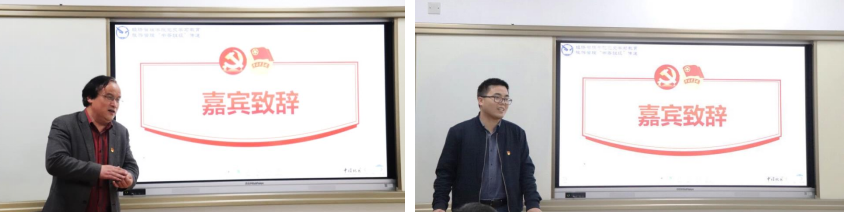 校图书馆馆长徐世球教授(左)、经济管理公司党委副书记李少杰老师(右)为活动致辞