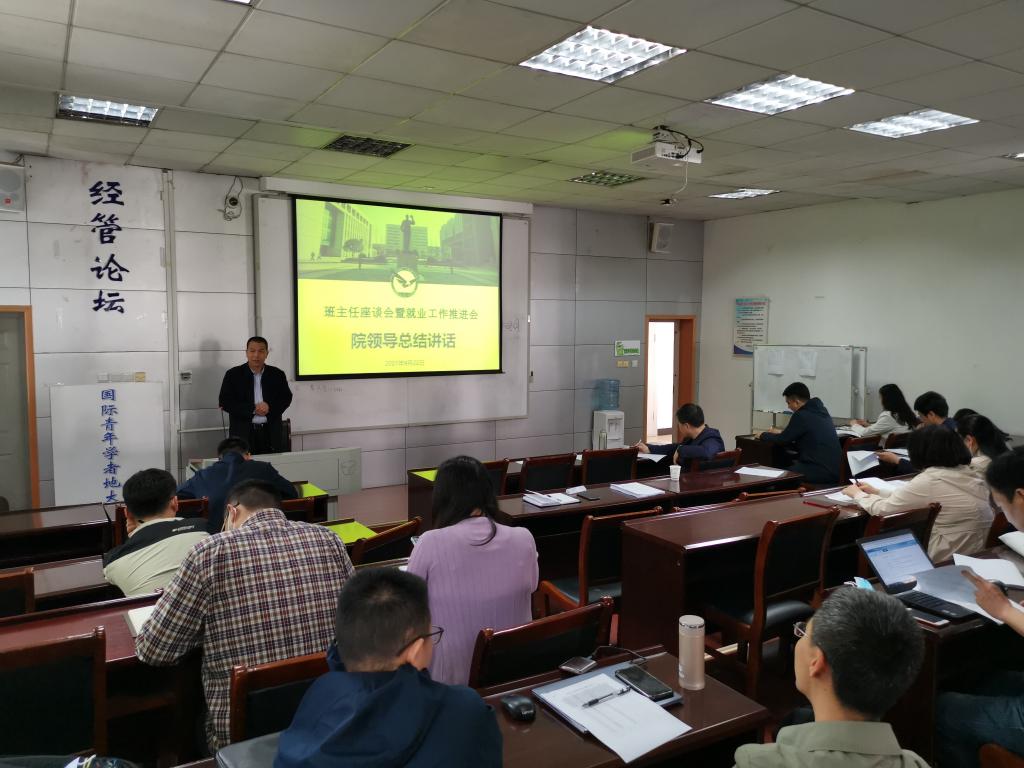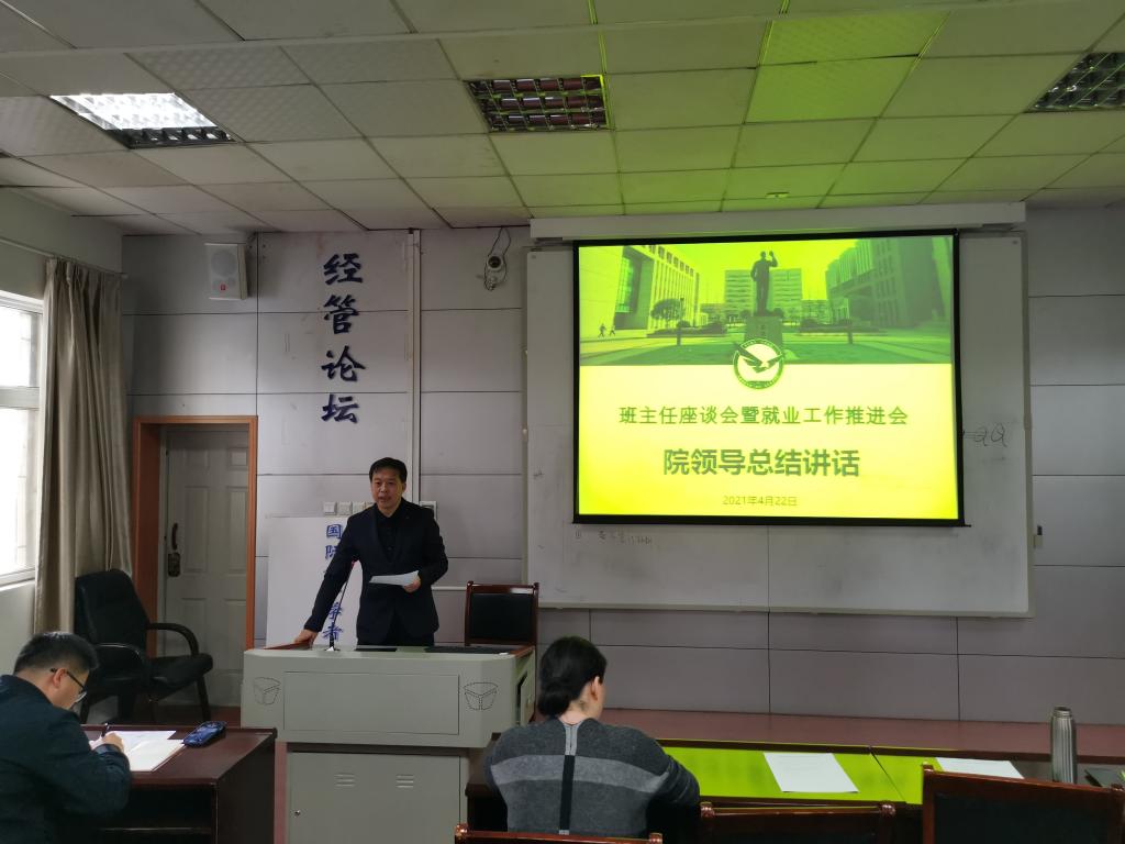 杨昌锐书记做总结讲话。一是要高度重视,积极推进2021届毕业生就业工作;二是要热情指导,班主任、辅导员要掌握每个员工的就业情况;三是要拓展单位,系主任、支部书记要积极联络行业内优质单位进校招聘;四是要精准就业,向有需要的员工推介各类就业政策;五是要完成目标,全员全力做好就业工作。