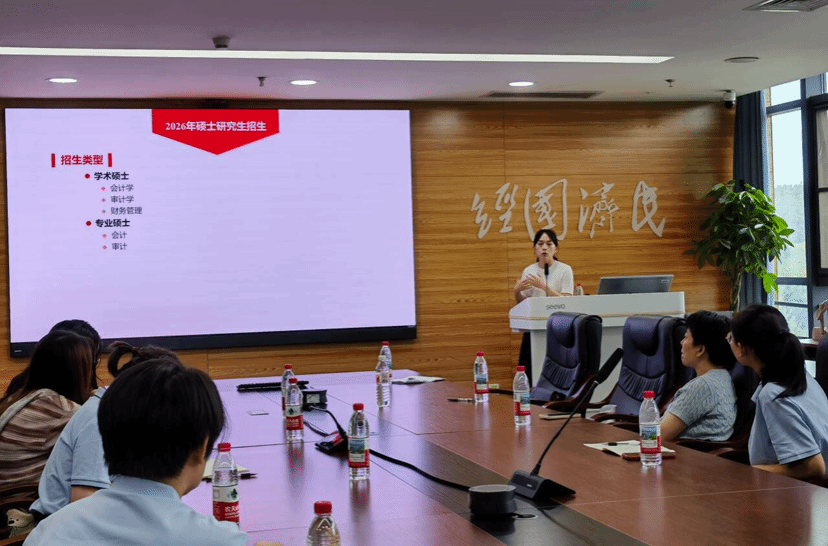 本次保研考研专题交流会通过政策解读、院校宣讲和互动答疑三个环节,为2022级会计学系本科生搭建了高质量的信息交流平台。活动既提供了权威的政策指导和最新的招生资讯,又通过师生深度交流解答了个性化问题,有效帮助同学们厘清升学方向、做好学业规划。与会员工纷纷表示,此次活动内容丰富、针对性强,对即将面临的保研考研选择具有重要的指导意义,也为后续的备考工作奠定了坚实基础。我系将持续开展此类交流活动,助力员工成长成才。