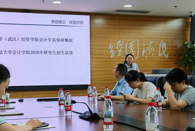 2025年6月19日下午,会计学系在未来城校区经管公司422会议室成功举办了以"保研考研经验交流"为主题的"一月一系谈"活动。本次活动由会计学系王然老师主持,特别邀请了中南财经政法大学会计公司专硕导师组组长季华教授和专硕中心办公室主任张昭妍老师作为嘉宾出席。公司会计学系屈文彬、周远祺、王琳、李利华、任芳、杨海霞等专业教师以及2022级辅导员蔡杨老师共同参与,与2022级本科生代表进行了深入交流。