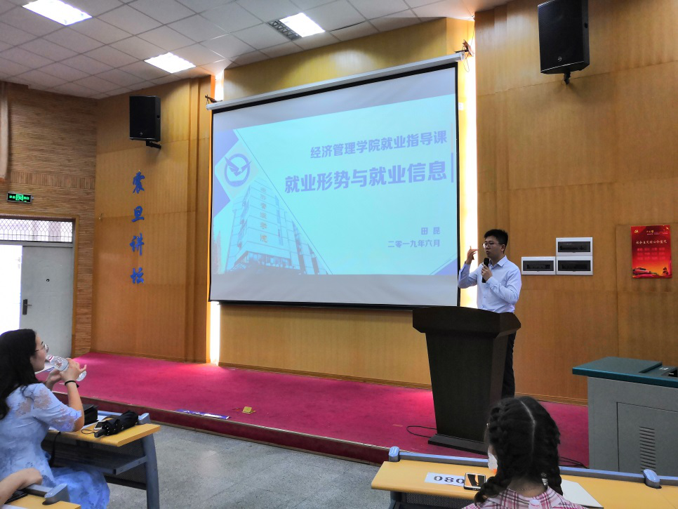 田昆老师系统分析了当前的就业形势与往届员工就业情况,通过这几年的升学、就业等详细对比数据,向同学们清晰地展示了准毕业生即将面临的严峻挑战,引起了同学们的重视。田老师强调说,分析这些问题不是为了让大家陷入恐慌失去信心,而是希望大家能加倍努力,都能朝着自己的目标前进!