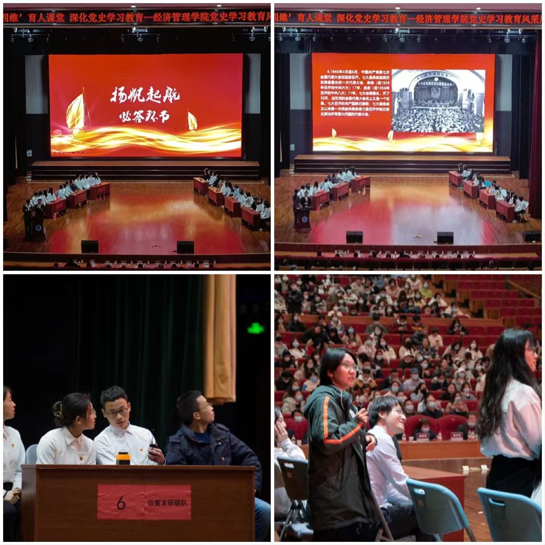 党史校史知识竞赛环节,各系党员师生代表组成的七支团队同台竞赛。通过必答题、抢答题和选答题三个环节,学习回顾党史百年奋斗的重大成就和历史经验,以及公司和公司的历史与文化。师生在互动中进一步深化了爱党爱国,兴校荣院的真挚情感。
